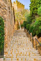 Trap naar het Castell de Capdepera, middeleeuws vestingmonument op Majorca, Spanje, Mallorca, Balearen, Balearen, Middellandse Zee, Spanje
