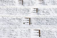 Hier is een soort arena gemaakt in het landschap met gras en trappen. Normaal al een plaatje, maar sneeuw maakt alles mooier.