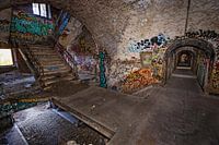 Trappenhuis en gang in het vervallen complex van Fort Chartreuse in het Belgische Luik.