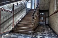 Een prachtig trappenhuis in een verlaten klooster. De lichtval langs de muur maakt deze trap extra mooi