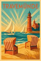 Deze Travemünde reisposter belichaamt de ontspannende charme van de Duitse Oostzeekust. Met de iconische vuurtoren, kleurrijke strandstoelen en zeilboten die over zee glijden, weerspiegelt het kunstwerk een zonnige en zorgeloze ontsnapping aan zee. Travemünde, bekend als het kustjuweeltje van Lübeck, is al lang een populaire vakantiebestemming voor reizigers die op zoek zijn naar frisse zeelucht, zandstranden en maritieme flair. Het vintage ontwerp met warm geel, blauw en rood straalt nostalgie en zomerse sferen uit, waardoor het een perfect stuk muurkunst is voor strandliefhebbers en kustliefhebbers. Of het nu in een strandhuis, een stadsappartement of een galeriemuur met een reisthema hangt, deze Travemünde print brengt helderheid en vakantiegevoel in elke kamer. Een prachtig cadeau voor iedereen die houdt van de schoonheid van de zee, zeilavonturen en vintage Europees kustontwerp.