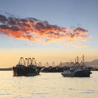 Koop de foto Trawlers vissersschepen (vierkant) van Inge Hogenbijl als print op canvas, aluminium dibond, (ingelijste) fotoprint, behang en ArtFrame. Voor jou op maat geprint in Fine-Art kwaliteit.