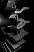 Een oneindige trap als het wiel van een loopband. Zwart-wit beeld.