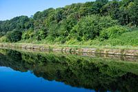 Trees and green vegetation reflecting in the banks of the River Sambre, Belgium