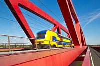 Trein op de Hanzeboog spoorbrug te Zwolle.