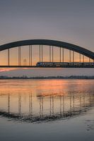 Mooie zonsondergang bij de spoorbrug over de Lek bij Culemborg dat als een onmiskenbaar baken in het weidse landschap staat. Haar elegante contouren en stijlvolle architectuur zijn niet te missen, en ze trekt de aandacht van iedereen die haar nadert. De brug, een meesterwerk van ingenieurskunst, verbindt niet alleen twee oevers van de rivier, maar fungeert ook als een symbool van verbinding en vooruitgang.
