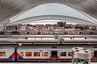 Het half open treinstation van Luik ontworpen door Santiago Calatrava met gezicht op de stad combineert moderne en oude architectuur.