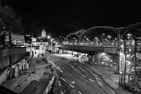 Het treinstation van Keulen naast de Hohenzollernbrücke in de nacht.