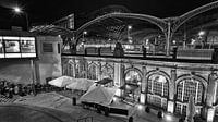 Nachtopname van het treinstation in Keulen naast de Hohenzollern brücke.