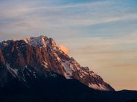 Zicht op de Zugspitze, Wetterstein gebergte, bij zonsondergang.