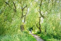 Treurwilgen bij een bruggetje in de notaristuin van Grootegast.