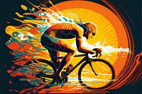 Koop dit digital art kunstwerk Triathlon wielrenner uit het water van Zeger Knops als reproductie op canvas, aluminium dibond, (ingelijste) fotoprint, behang en ArtFrame, op maat geprint in Fine-Art kwaliteit.