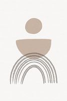 Moderne abstracte kunst met organische vormen (cirkel, halve cirkel en regenboog lijnen). Beige / zand kleuren. Simplistische kunst.