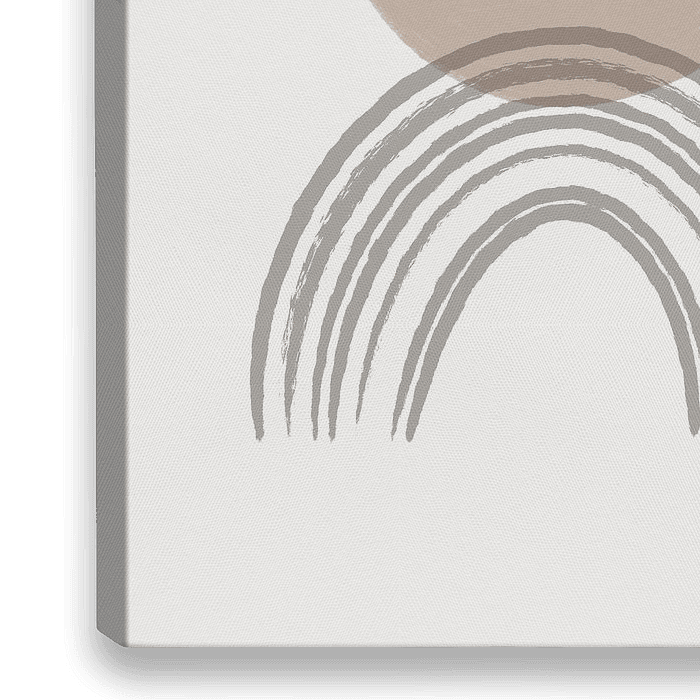 Moderne abstracte kunst met organische vormen (cirkel, halve cirkel en regenboog lijnen). Beige / zand kleuren. Simplistische kunst.