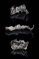 Hier 3 kunstzinnig gevormde droge bladeren.
