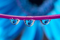 De 3 in 1 spiegeling van een Gerbera; 1 bloem weerspiegelt in 3 waterdruppels.