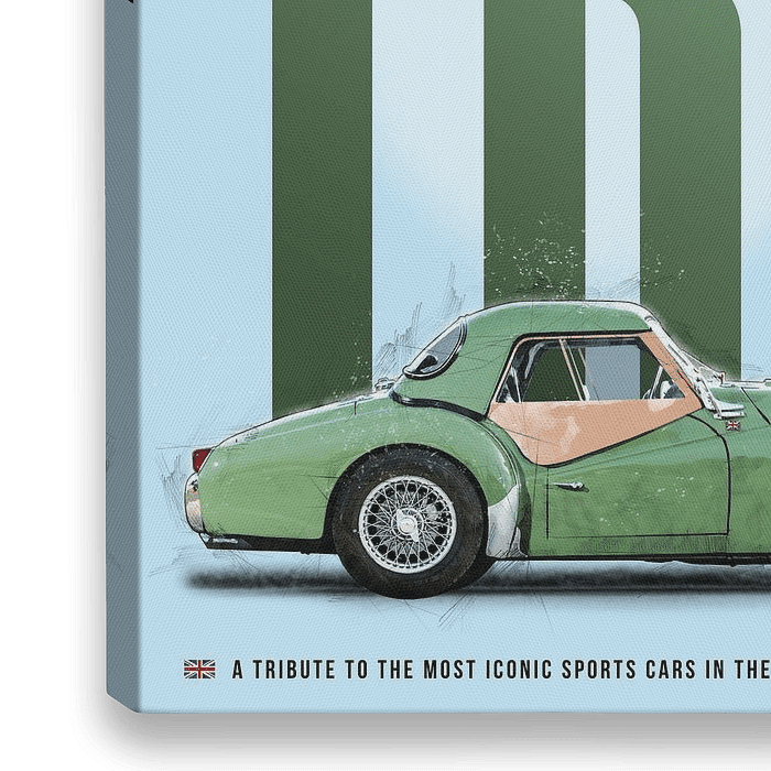 Koop de illustratie Triumph TR3 van Theodor Decker als print op canvas, aluminium dibond, (ingelijste) fotoprint, behang en ArtFrame. Voor jou op maat geprint in Fine-Art kwaliteit.