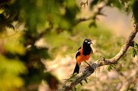 Deze Oranje Troepiaal (Icterus icterus) is op 6 augustus 2016 gefotografeerd op de Christoffelberg te Curaçao.