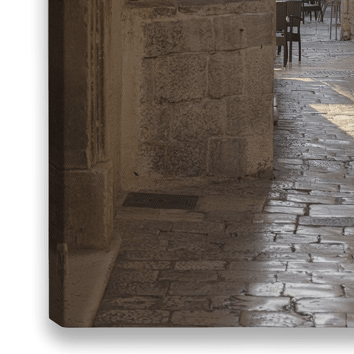 Het eerste zonlicht in de mooie straten van Trogir. Serene rust en of de tijd heeft stil gestaan.
