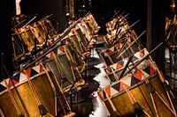 Symmetrische opstelling van trommels in het Rijksmuseum Amsterdam.