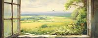 Trompe-l'oeil schilderij 43.67 - Een trompe-l'oeil is een kunsttechniek waarbij schilderijen zo realistisch zijn dat ze je laten denken dat je naar buiten kijkt. Een schilderij waarop bijvoorbeeld een raam of uitzicht geschilderd is. Het lijkt net alsof je echt naar een uitzicht buiten kijkt, ook al is het allemaal geschilderd. Het is een kunstige illusie.