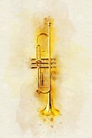 Over ‘Trompet in Levendige Waterverf - Glimmend Gouden Messing Muziekinstrum’ van Andreea Eva Herczegh