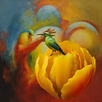 Mijn proces is intuïtief: kleuren vloeien samen, lijnen ontstaan spontaan, en uit die stroom groeit iets wat niet vast te leggen is in woorden. Elk werk is een moment van…