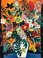 Verrijk je ruimte met een levendig kunstwerk in de stijl van Matisse. Dit kleurrijke en vrolijke schilderij met zomerse bloemen brengt een lach op je gezicht. Laat je betoveren door de speelse vormen en heldere kleuren, en voel de positieve energie. Voeg een vleugje zomerse pracht toe aan je interieur. Koop dit unieke kunstwerk nu en geniet elke dag van de levendigheid en vreugde die het uitstraalt.