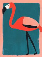 Dit speelse en grafische kunstwerk toont een gestileerde flamingo in een minimalistische compositie. Met krachtige, vlakke kleuren in roodroze en petrolblauw, en een zachte perzikkleurige rand, krijgt de vogel een moderne uitstraling met een retro knipoog. Het werk straalt rust én karakter uit – ideaal voor een stijlvol interieur dat…