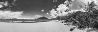 Tropisch strand in het Caribisch gebied op de Britse Maagdeneilanden Tortola in zwart-wit.