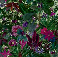 Tropische bloemen en vruchten in het exotische regenwoud in levendig groen en roze