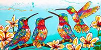 Neem jezelf mee naar een paradijs van levendige kleuren en natuurlijke pracht met onze "Tropisch Serenade" schilderij. Met zorgvuldige aandacht voor detail gemaakt, toont dit betoverende kunstwerk vier charmante kolibries te midden van een weelderige oase van tropische bloemen.