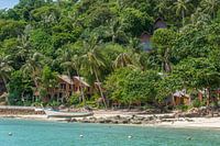Boten in de zee voor het strand van het prachtige Thaise eiland Koh Phi Phi in de Andamanse zee.