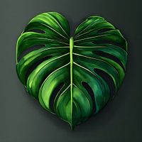 Een eenvoudig maar krachtig kunstwerk dat zich richt op de prachtige vorm en textuur van een enkel, groot tropisch blad. Het blad is weergegeven in levendige, glanzende groentinten met een schilderachtige stijl die de dramatische ribbels en plooien van het oppervlak benadrukt. Tegen een verfijnde donkergrijze achtergrond lijkt het blad verlicht, wat de weelderige, sculpturale vorm benadrukt. Dit stuk is een viering van tropische botanische schoonheid en maakt een gedurfd, modern statement.