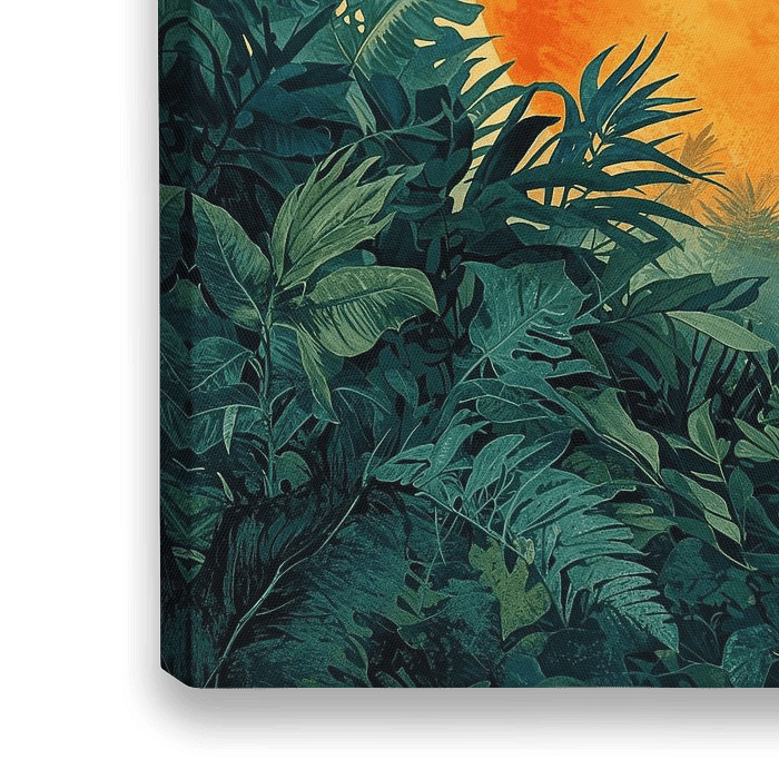 Tropisch landschap met opkomende zon. Kies zelf het formaat en materiaal bij deze blikvanger en maak het helemaal passend voor jouw interieur.
