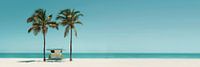 Deze verfrissende afbeelding van een tropisch strand met palmbomen brengt de schoonheid en rust van exotische kusten over. De zachte blauwe tinten van de zee en de lucht en de heldere silhouetten van de palmbomen creëren een ontspannen en uitnodigende sfeer. Ideaal voor woonruimtes die een stukje tropisch paradijs willen integreren.