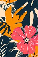 Laat je meevoeren naar een wereld van rust met "Tropische Sereniteit", waar de harmonieuze co-existentie van natuur en rust centraal staat. De diepgroene bladeren gecombineerd met de opvallende oranje en roze bloesems vormen een oase van kalmte. Dit kunstwerk is ideaal voor het creëren van een vredige sfeer in uw woon- of werkruimte.