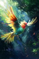 Tropische Vogel - Groen en Rood in Vogelvlucht van New Future Art Gallery