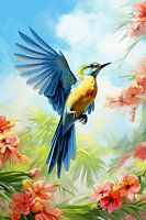 Koop dit vogel kunstwerk Tropische Vogel - Sierlijke Vlucht van New Future Art Gallery op canvas, aluminium dibond, (ingelijste) fotoprint, behang en ArtFrame, op maat geprint in Fine-Art kwaliteit.