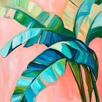 Een zacht tropisch briesje waait door een sfeervol kleurenspel van weelderig groen en delicaat roze. De weelderige bladeren ontvouwen zich als artistieke waaiers, terwijl het licht zachtjes danst op het oppervlak. Elke streek fladdert met levendige energie en nodigt je uit om de geur van de natuur in te ademen en je onder te dompelen in exotische dromen.