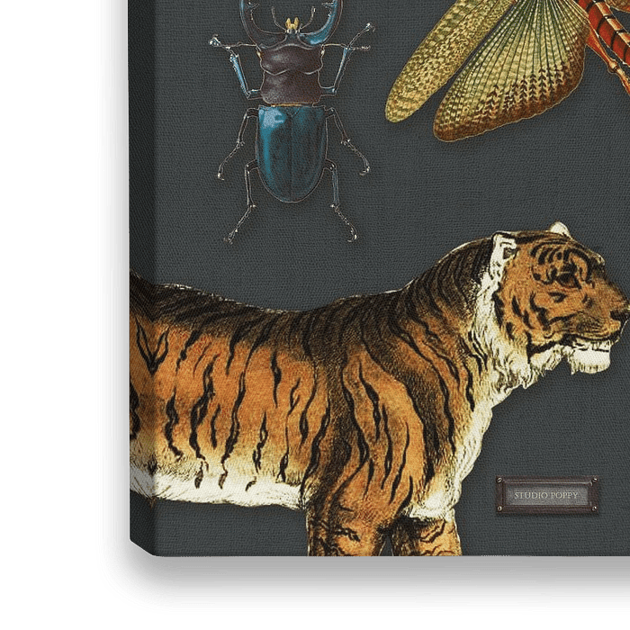 Tropische schoolplaat met vogels, vissen en jungle dieren. Je kunt dit op allerlei materialen laten drukken ter decoratie aan de muur. Denk ook eens aan het schoolplaat idee; een houten ophangsysteem. Kies in dat geval voor 50cm breed en laat het drukken op naadloos behang.