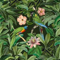Tropische vogels in een exotische vegetatie met bloemen en bladeren, ideaal voor natuurliefhebbers, avonturiers, reizigers en ornithologen