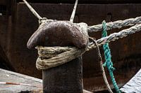 De haven en de kade de schepen en de trossen. Afgemeerd aan de bolders liggen de schepen te wachten voor ze weer naar zee gaan. De trossen strak gespannen De roest op het achterschip en de roest van de oude bolders, Deze foto is het beeld van het rauwe haven leven. Het afzetlint de structuren van de roest de krachtige lijnen van de trossen, en het achterschip en een stukje rustig kabbelend water ook dat is de haven van IJmuiden. Havenfotografie is een fascinerende vorm van fotografie die zich richt op het vastleggen van de bedrijvigheid in havens. Havensteden zijn vaak bruisende centra van handel en industrie, waar schepen, vrachtwagens en treinen af en aan rijden om goederen te laden en te lossen. Dit biedt fotografen de mogelijkheid om prachtige beelden te maken van grote schepen die aangemeerd zijn aan de kade, kraanmachines die containers van en op de schepen laden en lossen, en werknemers die druk bezig zijn met hun werkzaamheden. Havenfotografie kan een uitdaging zijn, omdat er vaak veel beweging en activiteit is en het licht constant verandert. Maar wanneer de juiste momenten worden vastgelegd, kunnen havenfoto's indrukwekkende en inspirerende beelden opleveren.
