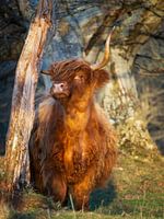 Deze dame, lid van de kudde van Applecross, poseert vol trots en zelfverzekerdheid, voor mijn lens terwijl achter mij de zon haar laatste stralen laat schijnen over het Schotse landschap.
