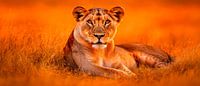 Deze zacht rustende leeuwin straalt majestueus en krachtig in warme aardse kleuren. Haar doordringende blik en zachte, gouden vacht nodigen uit tot een vleugje avontuur en nabijheid tot de natuur. Ideaal voor in de woonkamer, waar ze gesprekken stimuleert en een sfeer van kracht en rust creëert.
