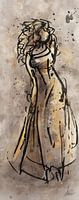Op dit abstracte werk zie je een dame met prachtige krullende haren. Het werk heeft in de basis taupe en greige kleuren die worden afgewisseld met goud geel en goudbruine accenten. Deze vrouw draagt een lange jurk. Klaar om naar het gala te gaan. De basis van dit kunstwerk is een houtskool tekening op papier. Deze is met digitale…