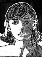 Hoe dan ook, dit portret, deze lino snede, mag oneffen zijn. Trouble in her mind...