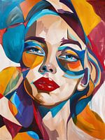 Kleurrijk abstract portret van een vrouw.