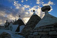 Trulli daken in Alberobello, Italië, tegen de avondlucht