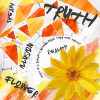 Een opvallend abstract werk met gele en oranje kleuren die elke kamer opvrolijkt!